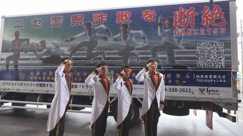 岐阜市内で行われたこの日の活動では、ロマンス詐欺の注意を呼びかけるオリジナル曲「さよなら、ロマンス」を披露し、続いて、偽の警察官が金銭をだましとろうとする詐欺について歌った新曲「それは、嘘」を熱唱しました。