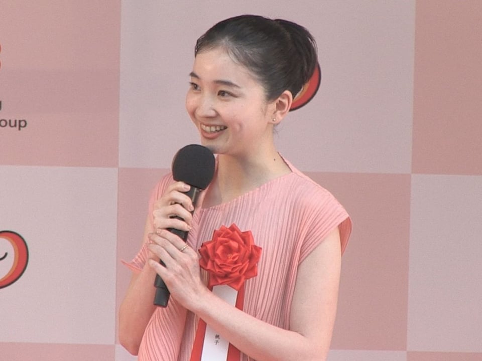 セレモニーには、社員ら約250人が参加。アプリのCⅯなどに出演する俳優の福地桃子さんも駆け付けました。十六FGの池田直樹社長は「50万ユーザー突破も多くのお客さまの支援と皆さんの地道な営業活動のおかげ」などと感謝を伝え、「100万ユーザー目指して頑張っていきたい」と決意を述べました。