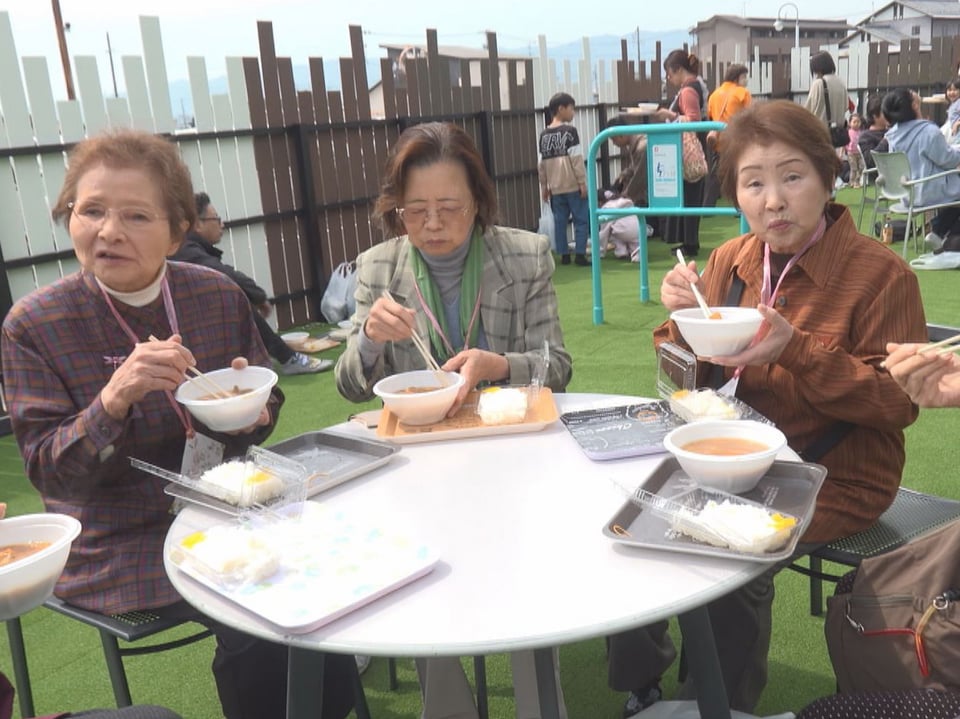 式典に合わせて「おいでよ!あんぱち温泉ひろば」と題した交流イベントが催され、多くの地域住民らがグルメやスポーツ、ゲームを楽しみました。
