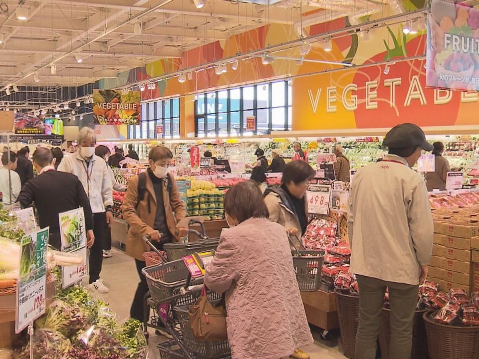 午前9時のオープンと同時に大勢の買い物客らが朝採れ野菜や鮮魚など、お目当ての商品を手に取っていました。
