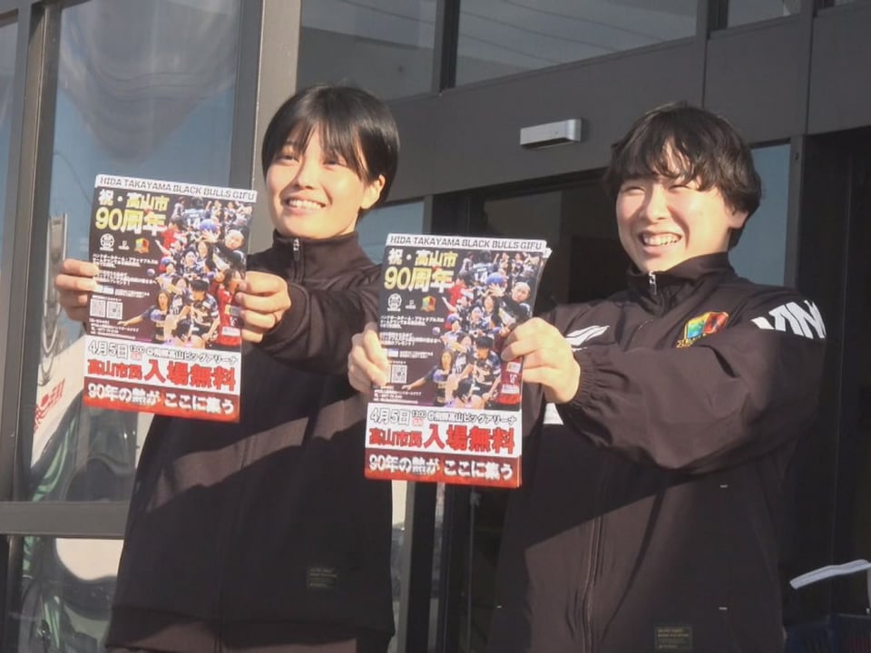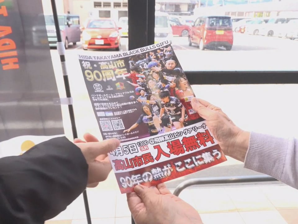 - ハンド・ブルズ 市民は入場無料 市制90周年記念試合を前に選手がPR 岐阜県高山市