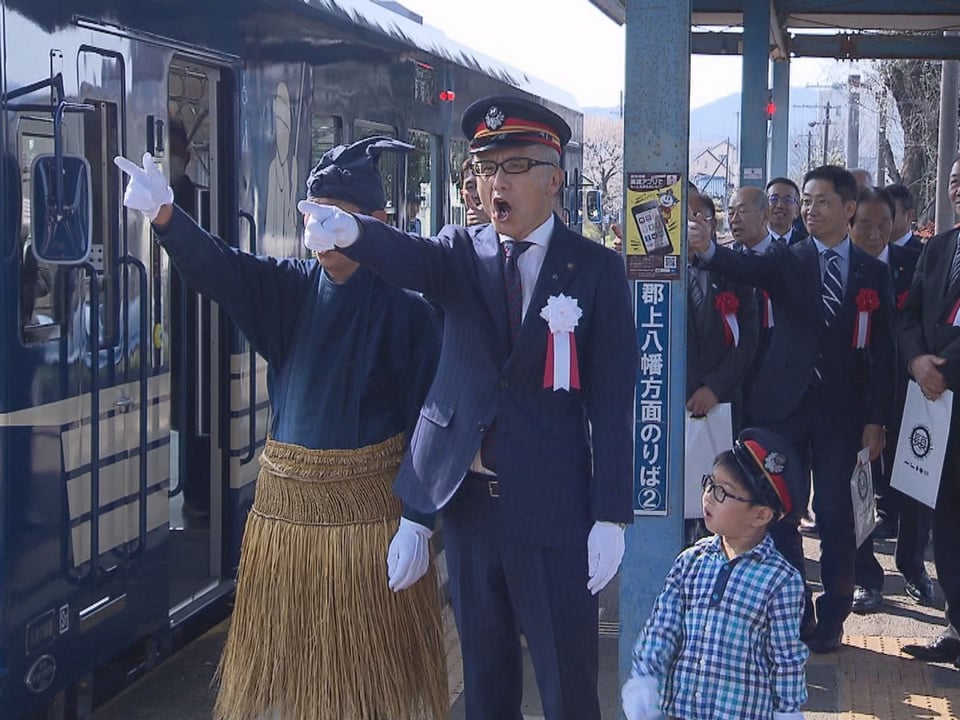 長良川鉄道は、新型車両「清流号」を導入し、関市の関駅で28日、出発式を行いました。