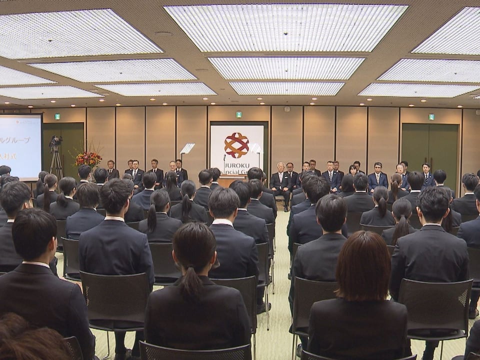 一方、岐阜市の十六フィナンシャルグループ(FG)では、新入社員158人が入社式に臨みました。