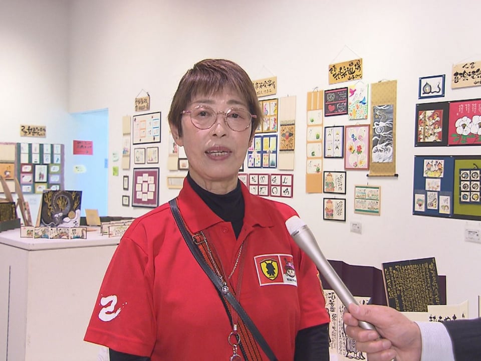「たくさんの作品が並んで、どなたにも見ていただける楽しいものです。無料体験もやっていますので、ぜひまた見に来てください。よろしくお願いします」