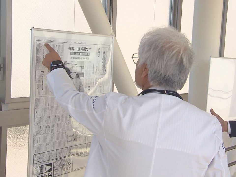 会場は病院内の通路など2か所で、施設の完成や最新医療機器の導入、難易度の高い手術の成功、コロナ禍での感染防止対応などを伝える記事のほか、インタビュー記事、関連広告など25点の紙面を17種類のパネルにまとめて展示されています。