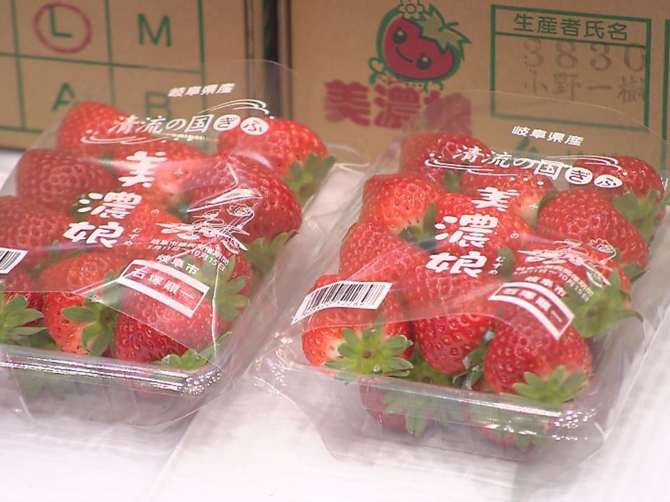 マルシェは毎月、旬の食材がテーマとなり、4月は「春のいちごフェア」と題してぎふ農業協同組合(JAぎふ)など3団体が「美濃娘」や「濃姫」など計約350パックを出品。ほかにも県就農支援センターなど6団体がトマトやキャベツ、ホウレン草など季節の野菜や加工品、花などを販売し、来場者らはお目当ての品を次々と買い求めていました。