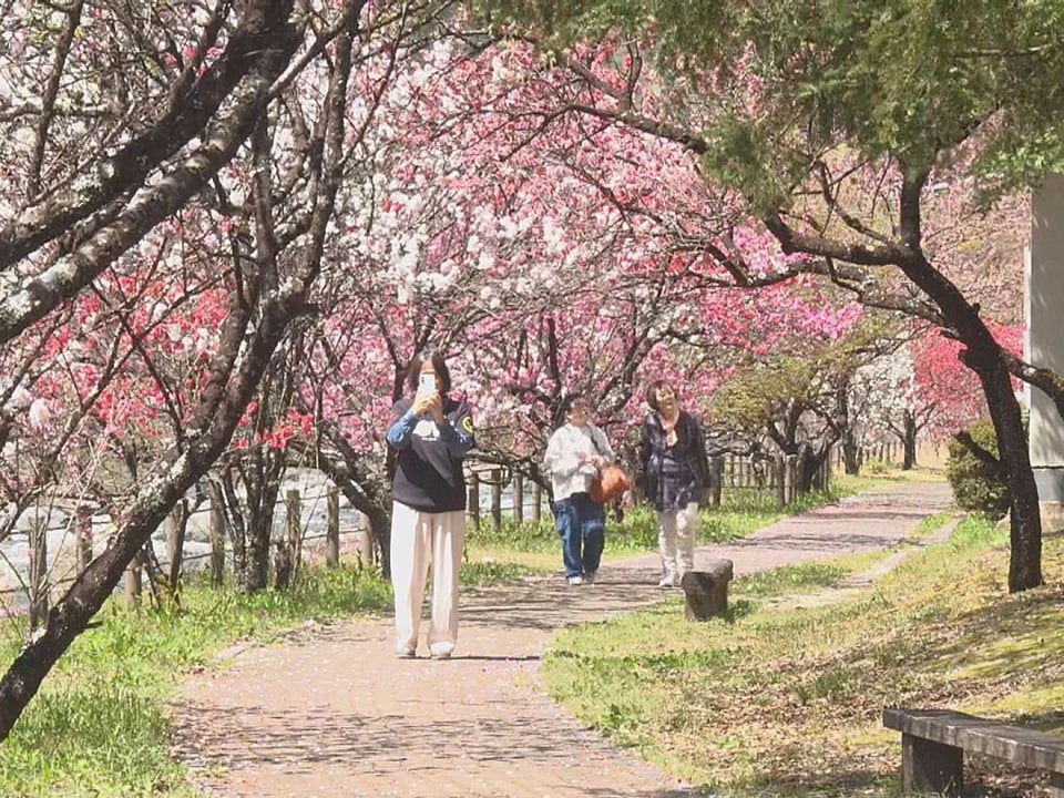 下呂市小坂町では色鮮やかなハナモモが見頃を迎え、訪れる人の目を楽しませています。
