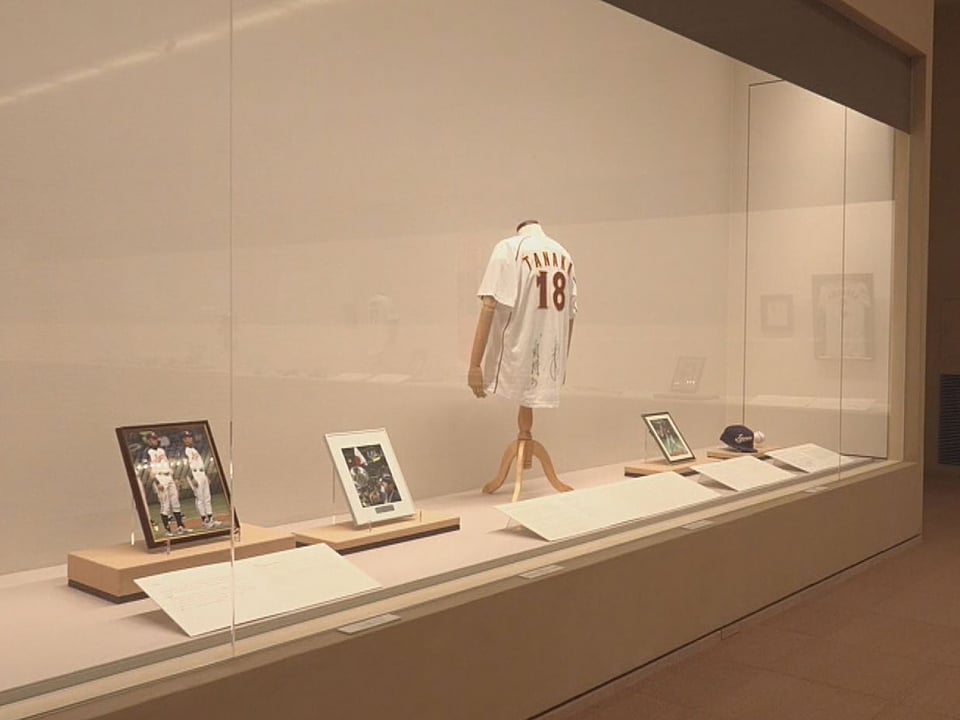 また、イチローさんがマリナーズ時代の公式戦で使用したサイン入りユニフォームや、ボールの打撃痕が残るバット、故長嶋茂雄さんのサイン入りユニフォームや現役時代の写真も注目で、来館者は時代を超えて輝くスターたちの足跡を感慨深そうに見入っていました。
