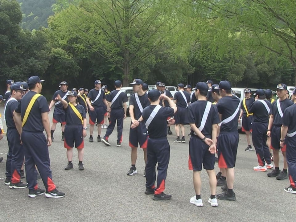 「特殊詐欺にだまされないで」「信じるな『オレオレ』」など特殊詐欺被害防止を啓発する標語の書かれたたすきをかけた初任科生らは、ふもとの駐車場から三田洞展望広場まで、木々が生い茂る約2キロメートルの山道を力の限り駆け抜け、次々にゴールしていきました。