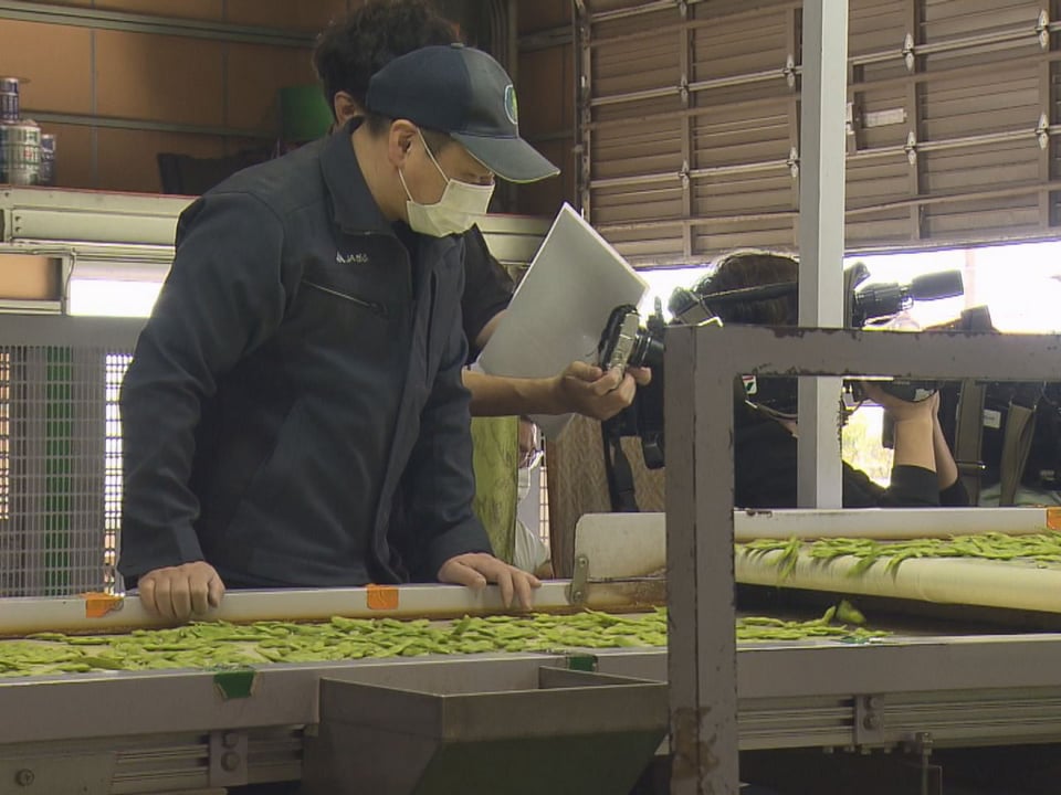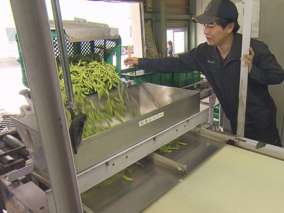 市内の選果場には出荷初日に、約500キロの枝豆が持ち込まれ、職員が傷や形などを確認して機械で袋詰めにしていました。