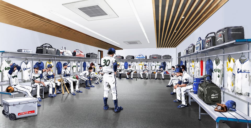 独立したブルペンを1塁側と3塁側に各2レーン、冷暖房完備の選手控え室をダッグアウト裏に整備。