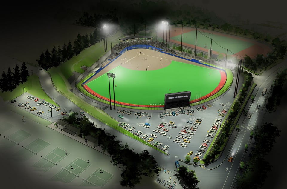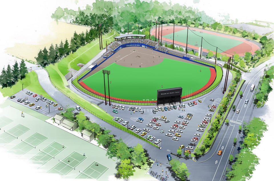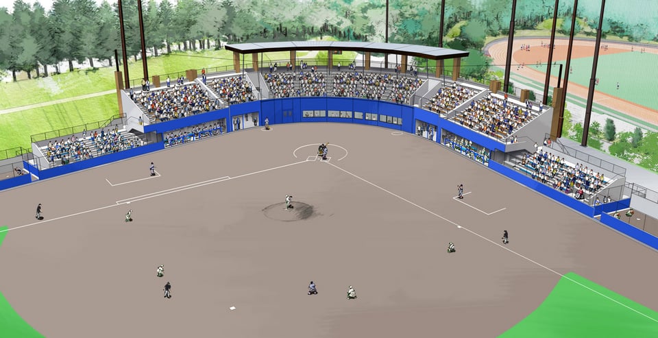 飛騨地方の野球の聖地のリニューアル。工事の完了は2027年12月、供用の開始は2028年4月の予定です。