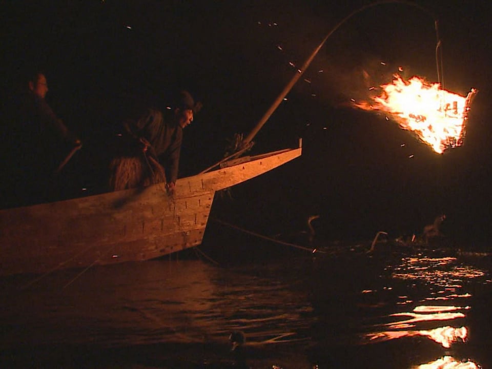 関市の長良川を舞台にした伝統の小瀬鵜飼は、漆黒の闇の中でかがり火の光だけをたよりに漁を行う幽玄な世界が魅力で、鵜匠の巧みな手縄さばきを鵜舟と並走する観覧船から間近で見ることができる「狩り下り」の迫力が見どころです。