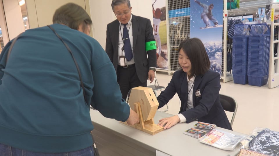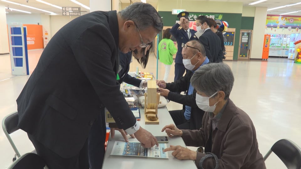 買い物客らは署員の示したQRコードからアプリをインストールし、最新の詐欺の手口や注意点などの説明を受けたあと、多治見署員が持ち寄ったマスクやシュレッダーなどが当たるガラポンを回し、景品を受け取っていました。