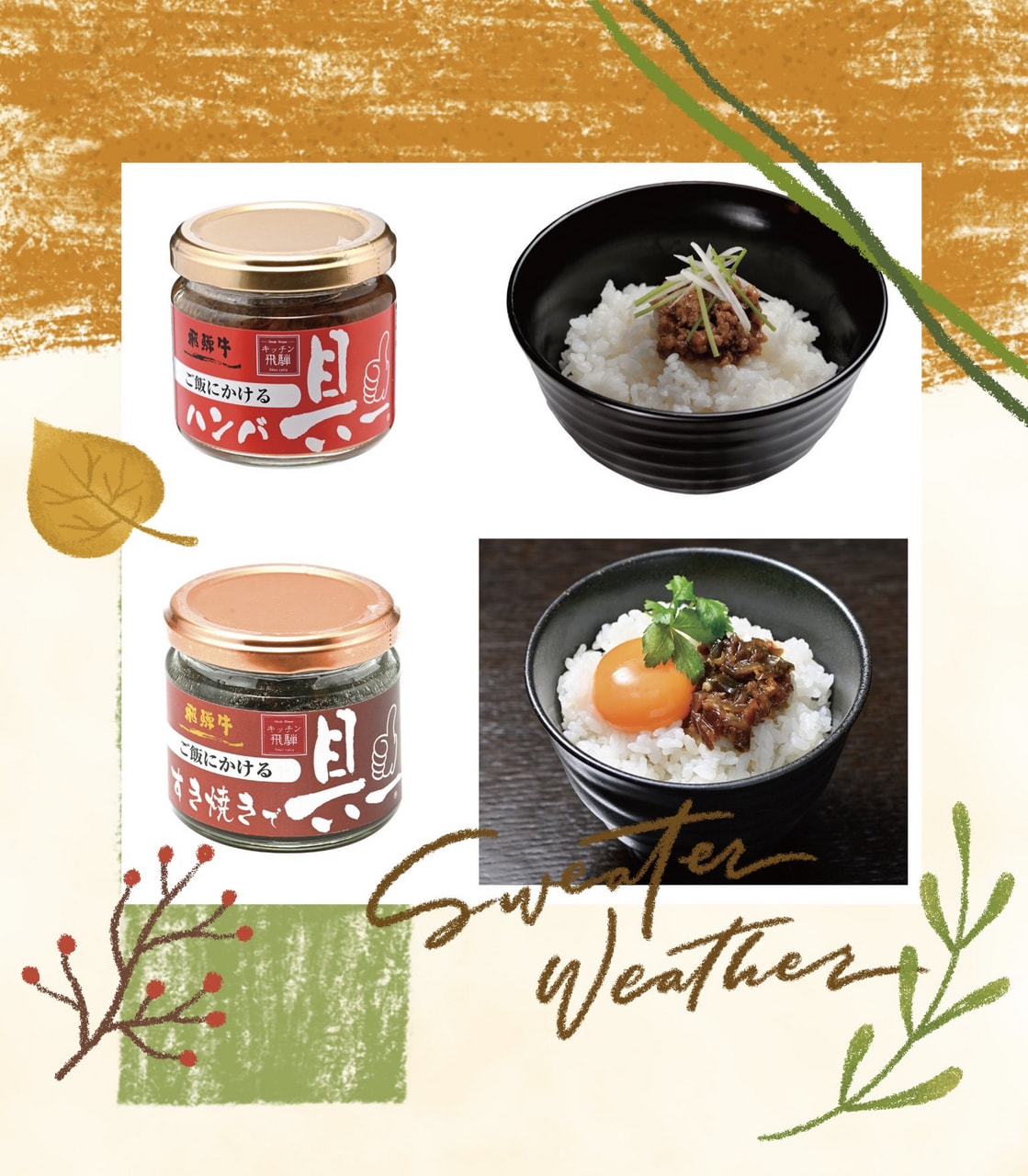 (2)飛騨牛の「ご飯にかけるハンバ具ー」と「ご飯にかけるすき焼きで具ー」 2瓶ずつのセット
