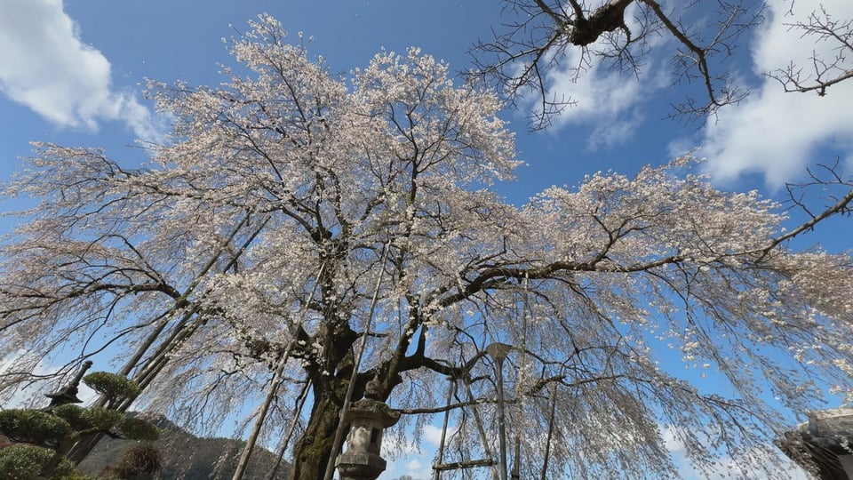 春が訪れると境内にやわらかな彩りを添える「しだれ桜」。