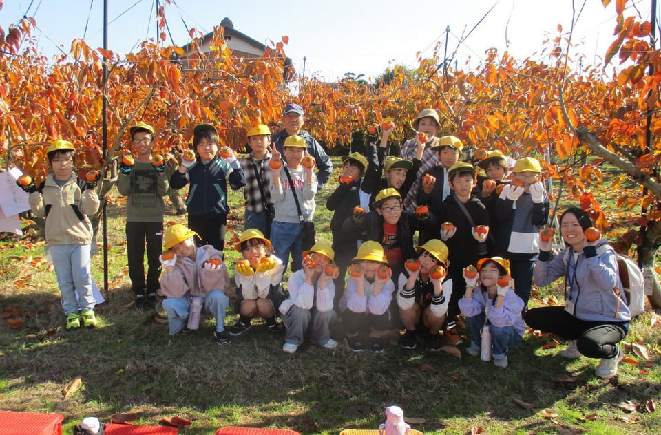 地元の特産品「富有柿」について学ぶふるさと教育の授業を紹介。