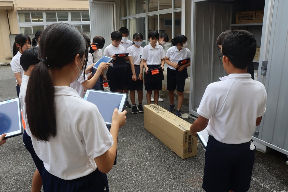 6年生が取り組む「防災」をテーマにした授業を紹介。自らテーマを見つけて調べ、探求していく姿を伝える。