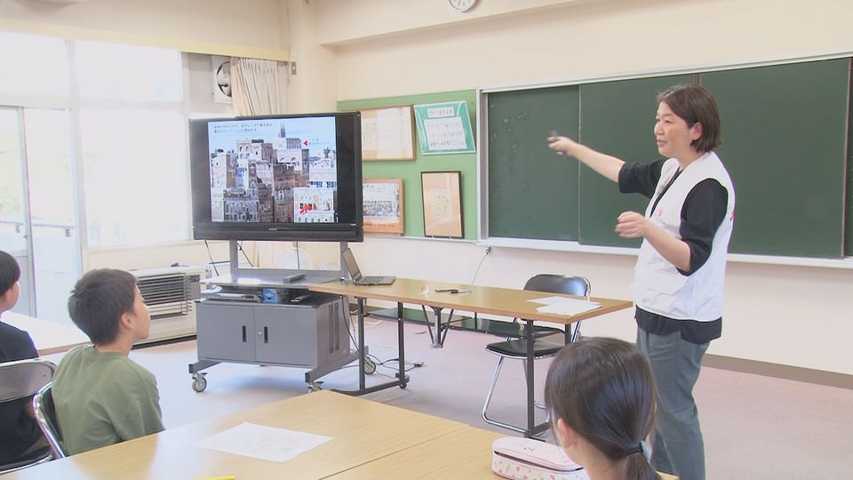山口小では保護者や地域の方々も自由に参加できるオープンスクールを行っている。今回は「国境なき医師団」の活動について講師を招いて話を聞く。