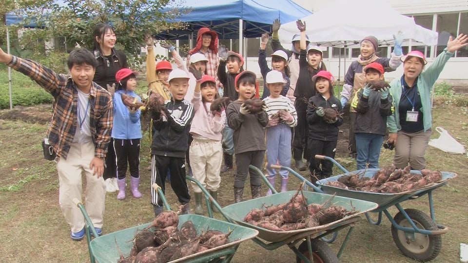 山口小では地域との関わりを大切にした授業が行われている。1・2年生が取り組んだ芋掘りの様子を伝える。
