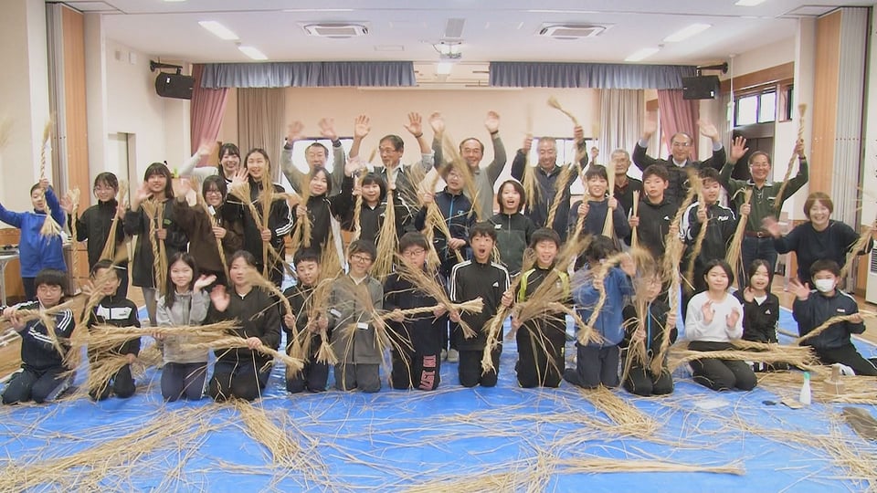 地域講師を招いて行われた「しめ縄作り」の体験授業の様子を伝える。